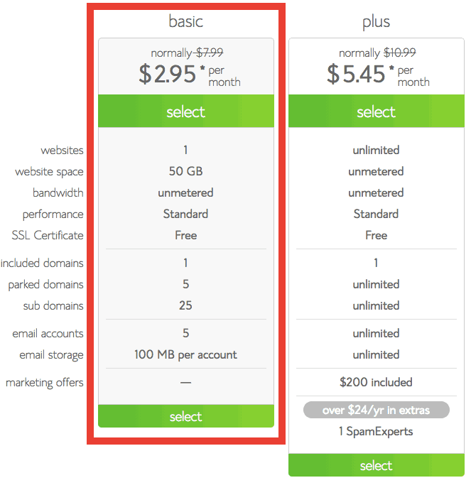 Bluehost offers two plans, basic and plus. Despite the name, basic is the best option for your first blog.