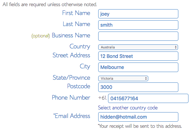 You’ll now be asked to enter your personal details including name, country, city, address, phone number and email address.