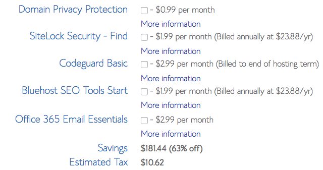 Most web hosts offer incentives and extras you can add during the checkout process. Personally I don’t think you need any of them but if you do, the Sitelock feature is very good for keeping your site even more secure!