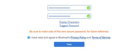 You’ll be asked to create a password for your new hosting account, so ensure you set a strong password!