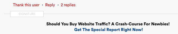 This means when you post on the forum, your site will show up on every post. If you’re popular and active on the forums then you could easily rack up 1000 posts quite easily.
