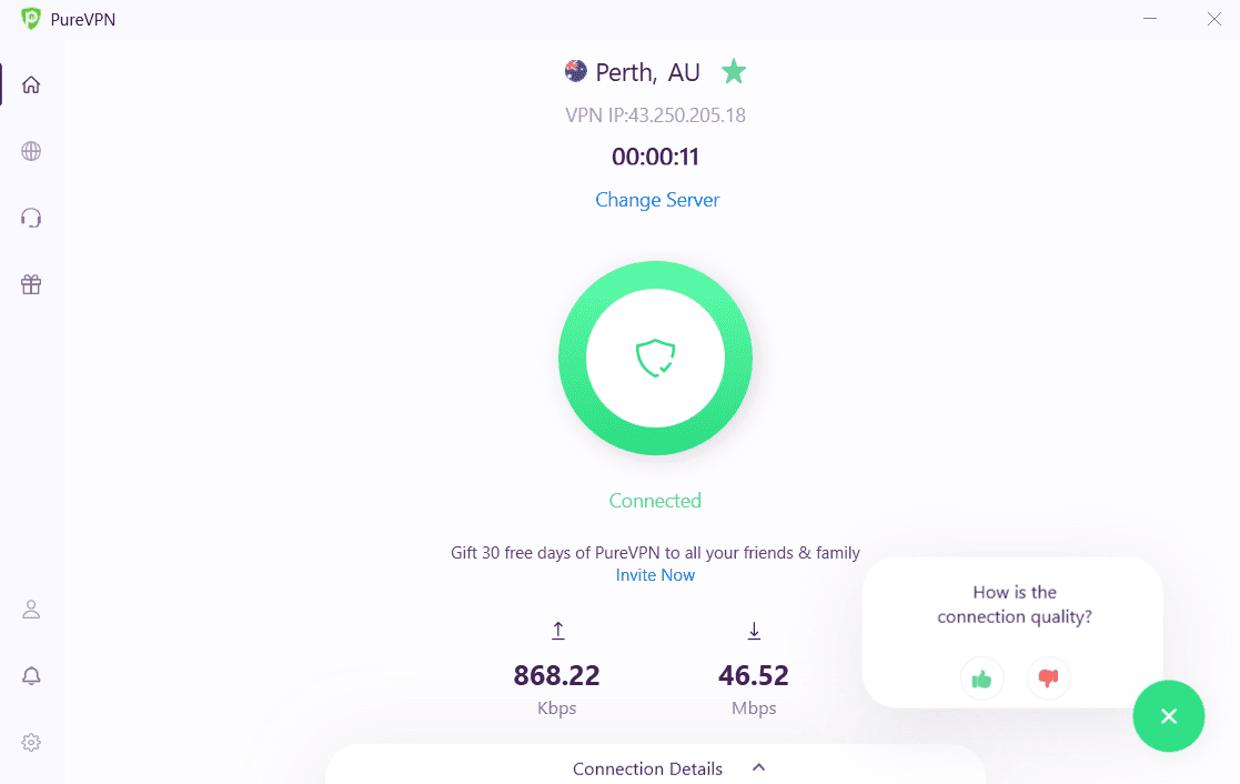 You’ll be advised by the VPN app once your IP has changed and you’re routing your connection via Australia.
