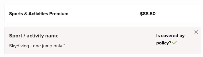 If you’re planning on doing anything extreme such as sky diving, rafting, dirt biking or bungee jumping then you must pay a premium surcharge. Currently they offer three levels of risk (0,1,2). For example sky diving is currently level 2 and can add $$ to your policy.